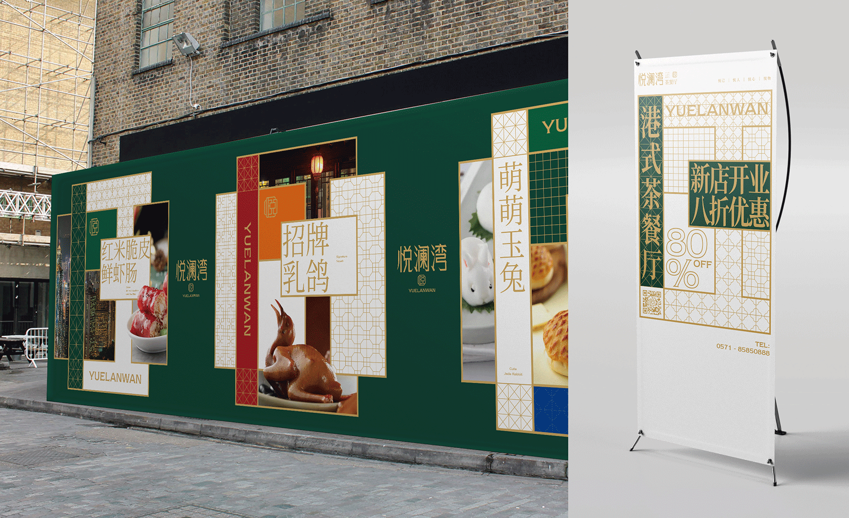 悦澜湾 YUELANWAN 杭州郡悦酒店旗下,高品质港式茶餐厅品牌。品牌名称字体设计以复古港风为基调,彰显浓郁的上世纪90年代时尚品味,巧妙的将传统南方窗花纹路改造成品牌核心“悦”字,悦己悦人,悦心悦物。墨绿与金色的搭配,兼具优雅与品质,将成为杭城茶餐厅品牌标杆之作。 |