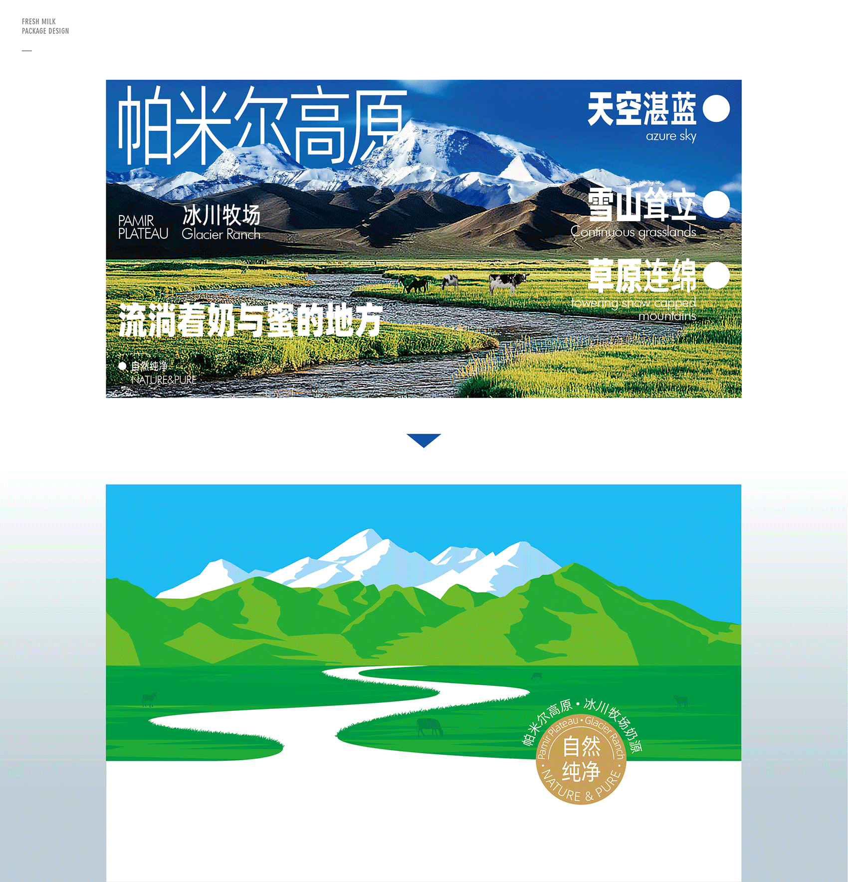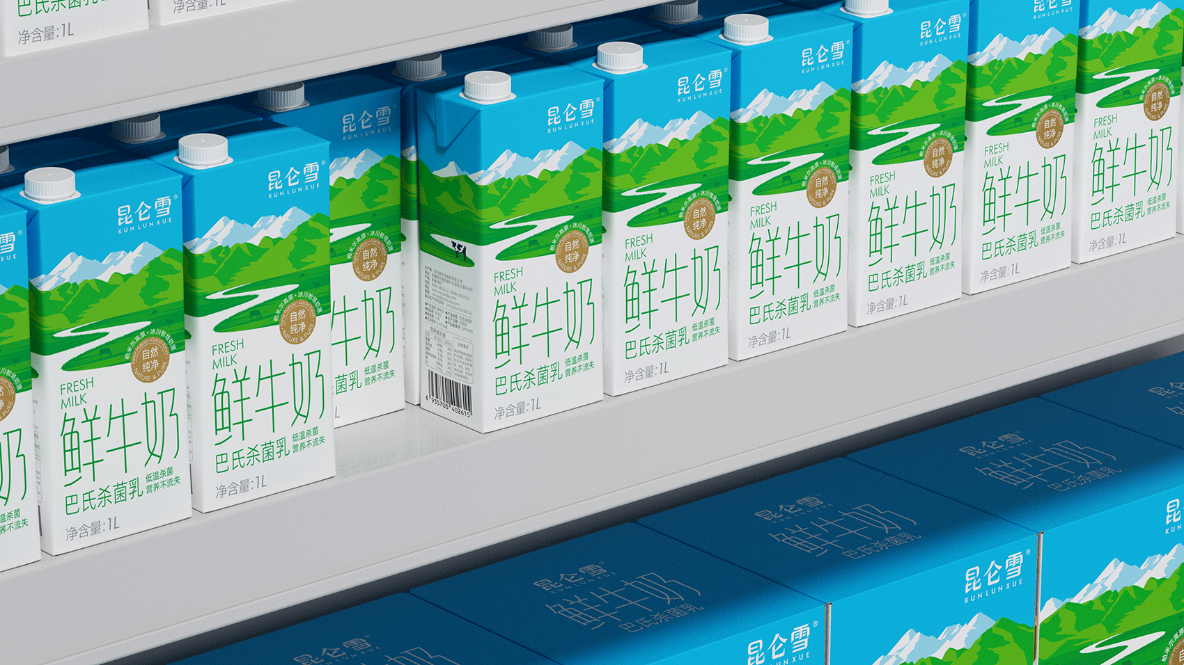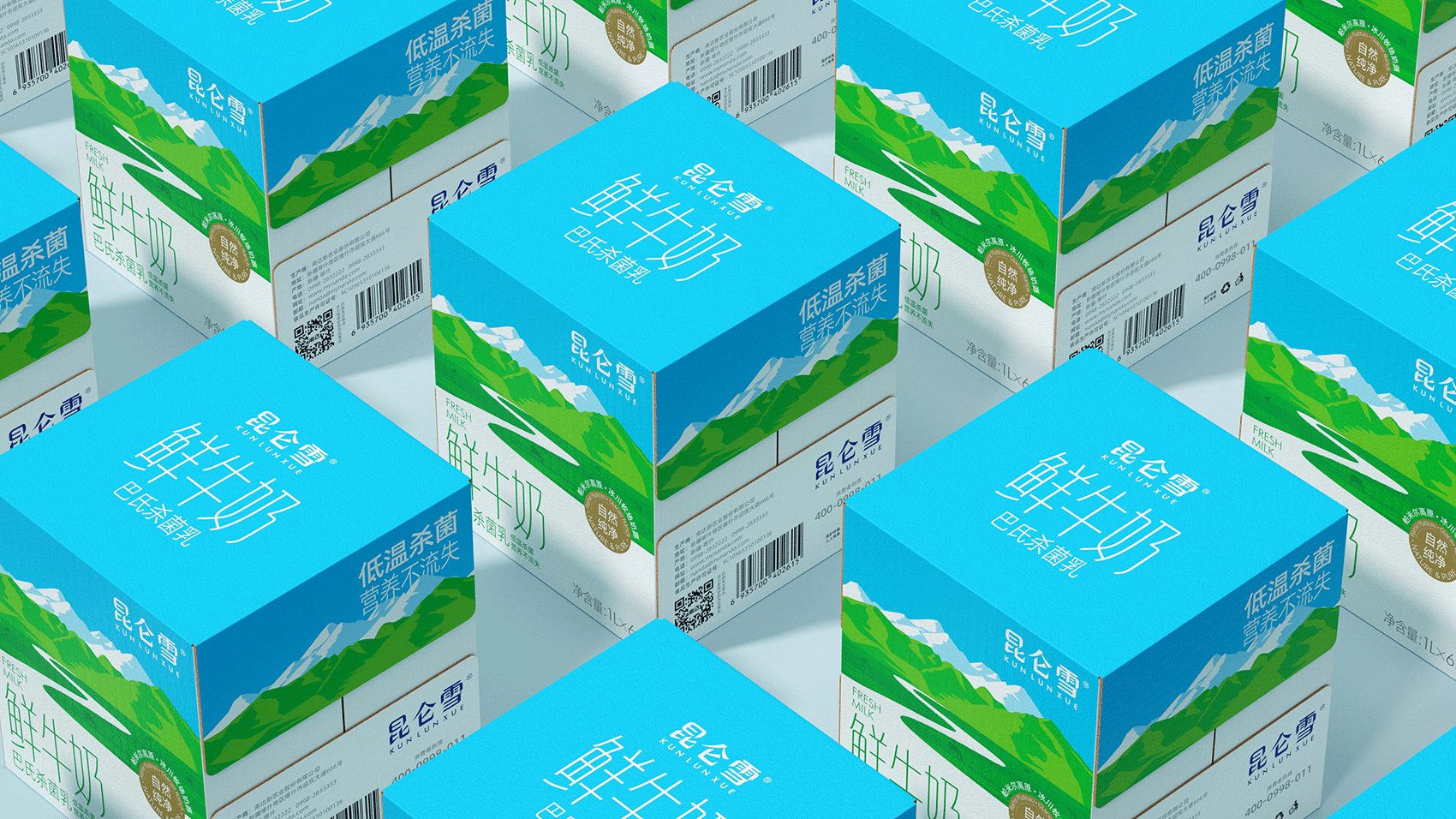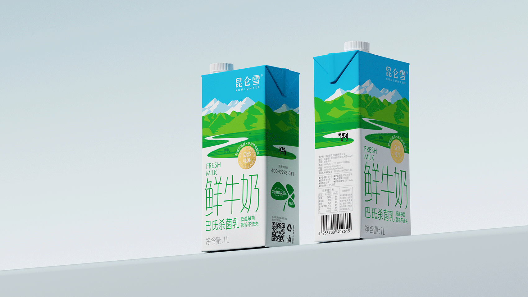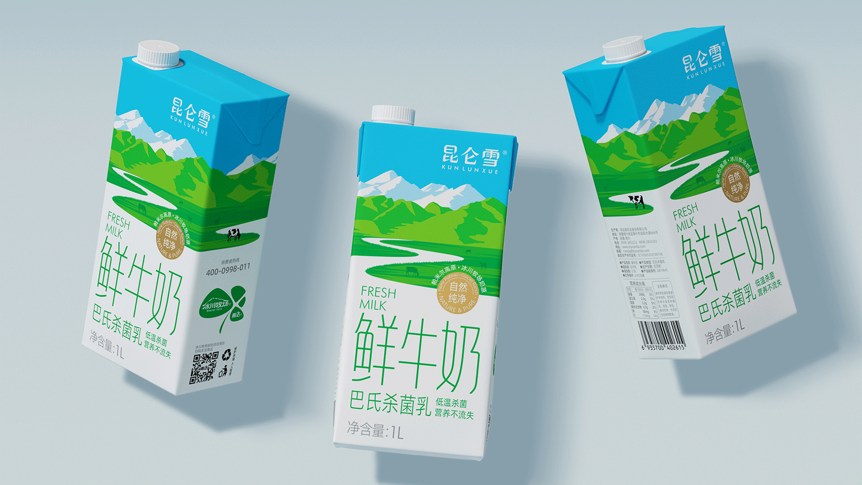昆仑雪 鲜牛奶 昆仑雪鲜牛奶 源自昆仑山脉西端帕米尔高原冰川牧场奶源,采用巴氏低温杀菌,营养不流失。将“冰川融水流入牧场”的核心概念形象体现其中,与品牌名称进行了深刻的互动,赋予产品更为形象的价值联想。 |