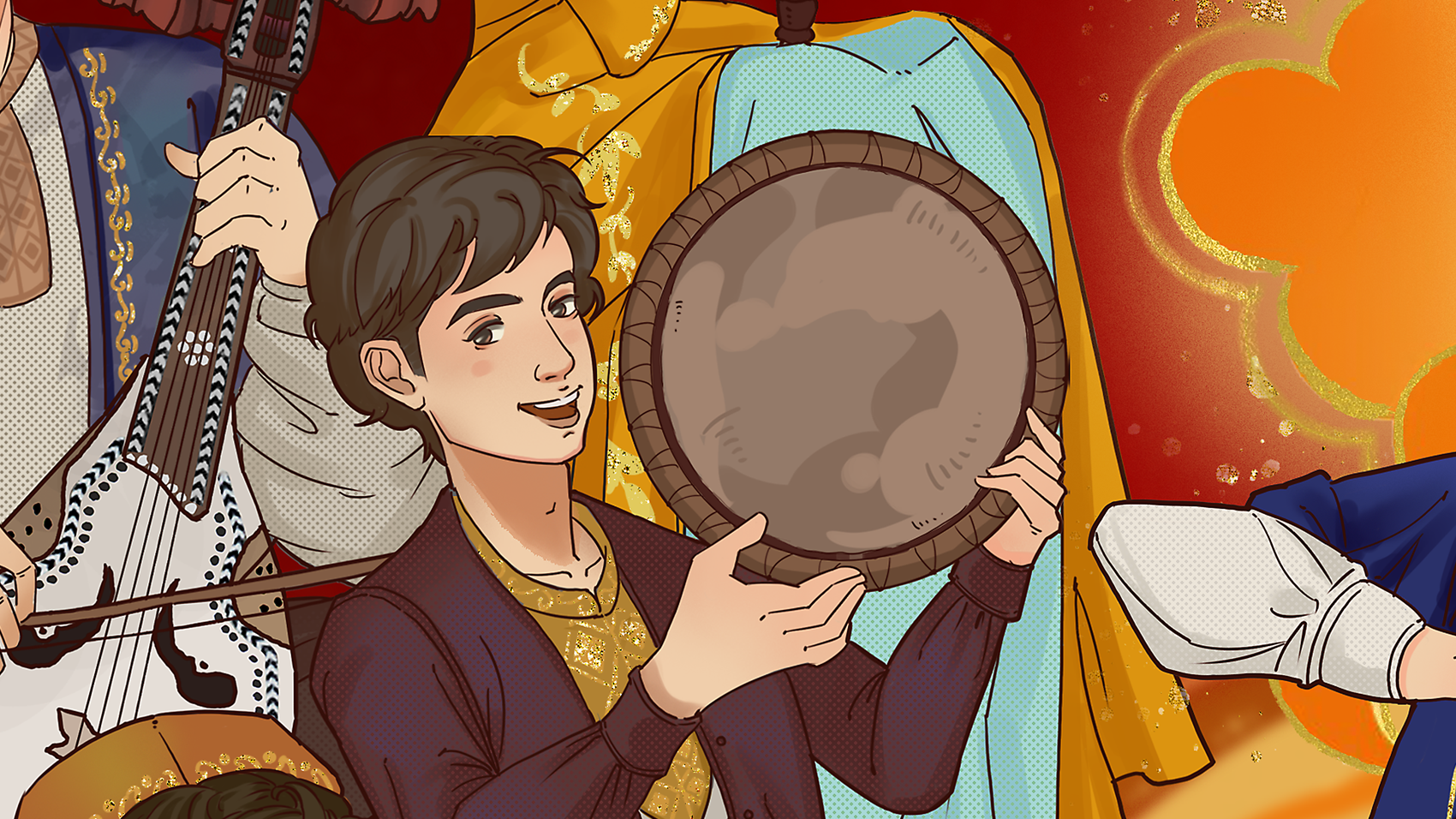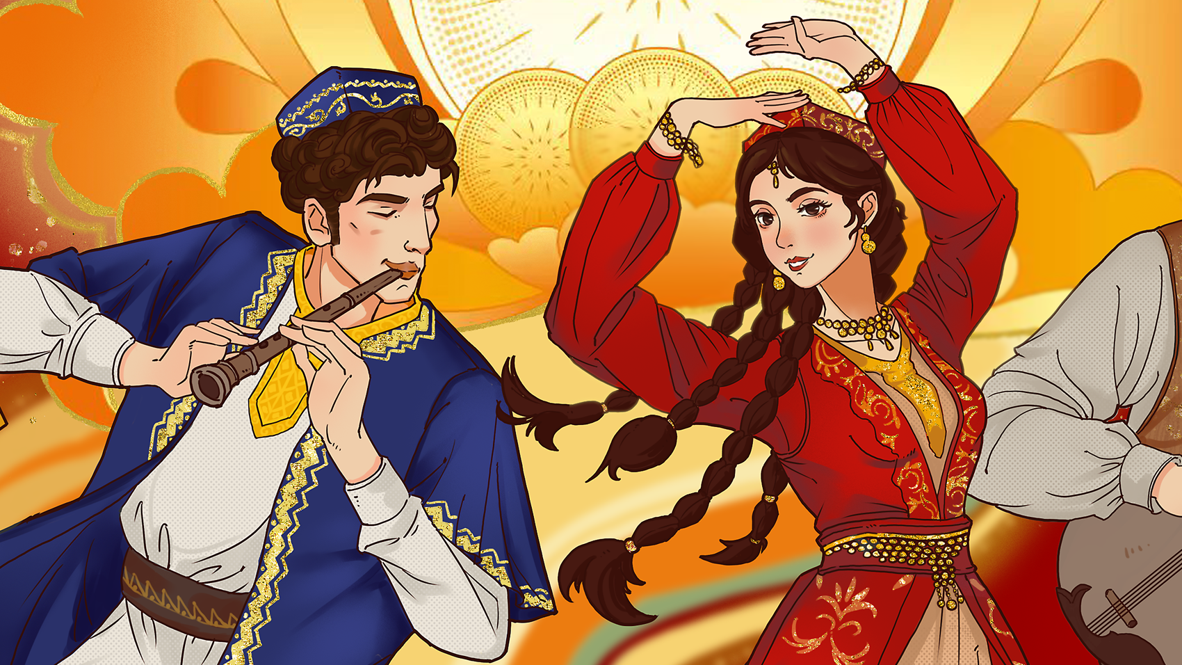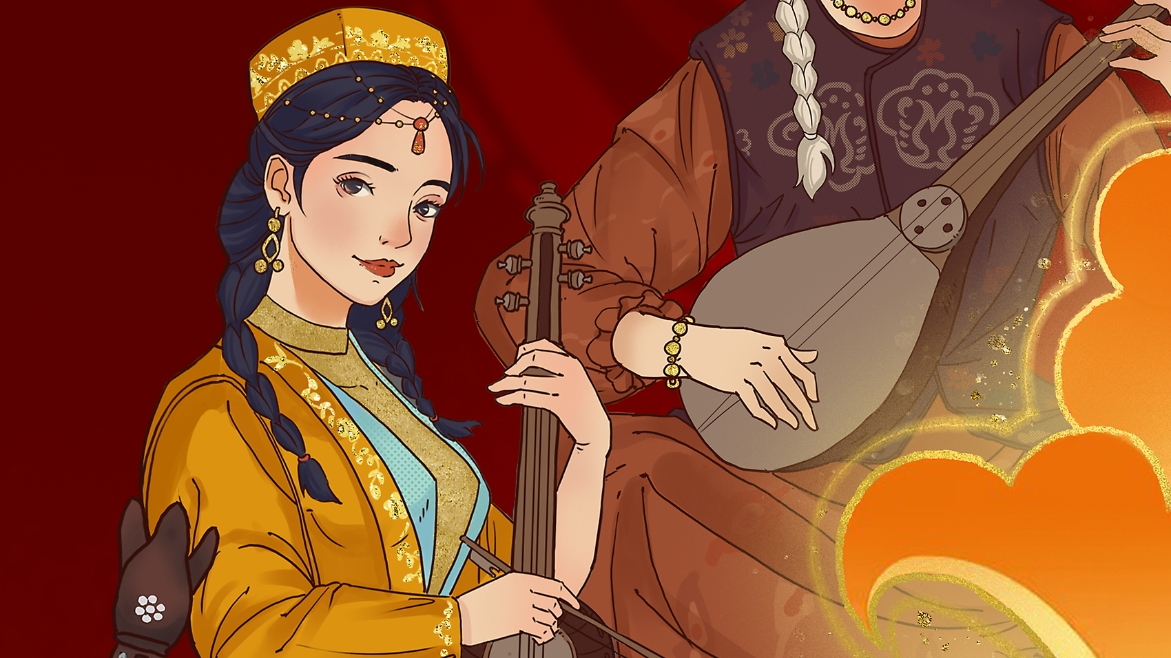主题:维吾尔十二木卡姆 维吾尔十二木卡姆是维吾尔族集歌、舞、乐于一体的大型综合艺术形式,承载着丝绸之路上绿洲文明的灵魂。 乐器:萨塔尔、弹拨尔、达卜、卡龙、艾捷克、都塔尔、乃依、萨帕依、热瓦甫、它石、胡西塔尔、纳格达鼓。